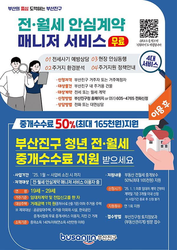 부산광역시 부산진구청에서는 2025년 1월부터 '청년 전월세 중개수수료 지원사업'을 시행한다고 알렸습니다.