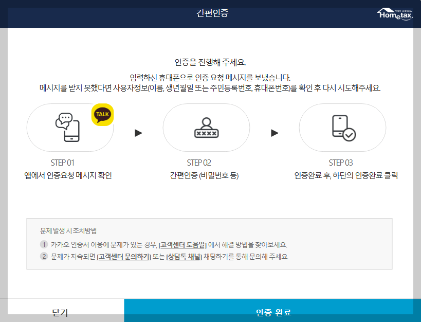 4. 홈페이지 안내에 따라 진행하기(아래의 그림은 카카오톡 간편인증 방법입니다.)