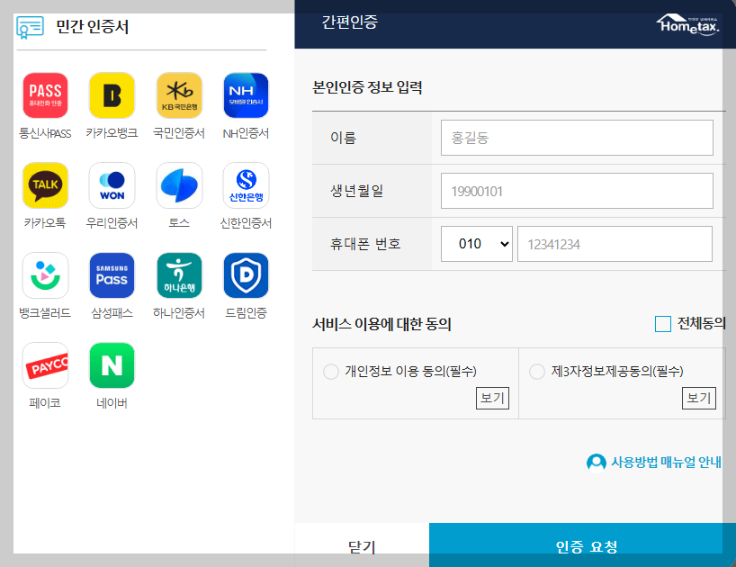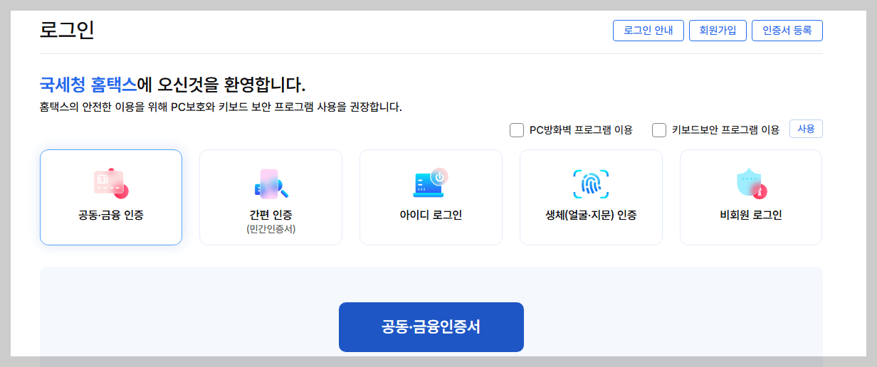 - 국세청 홈택스 또는 모바일 앱에 접속