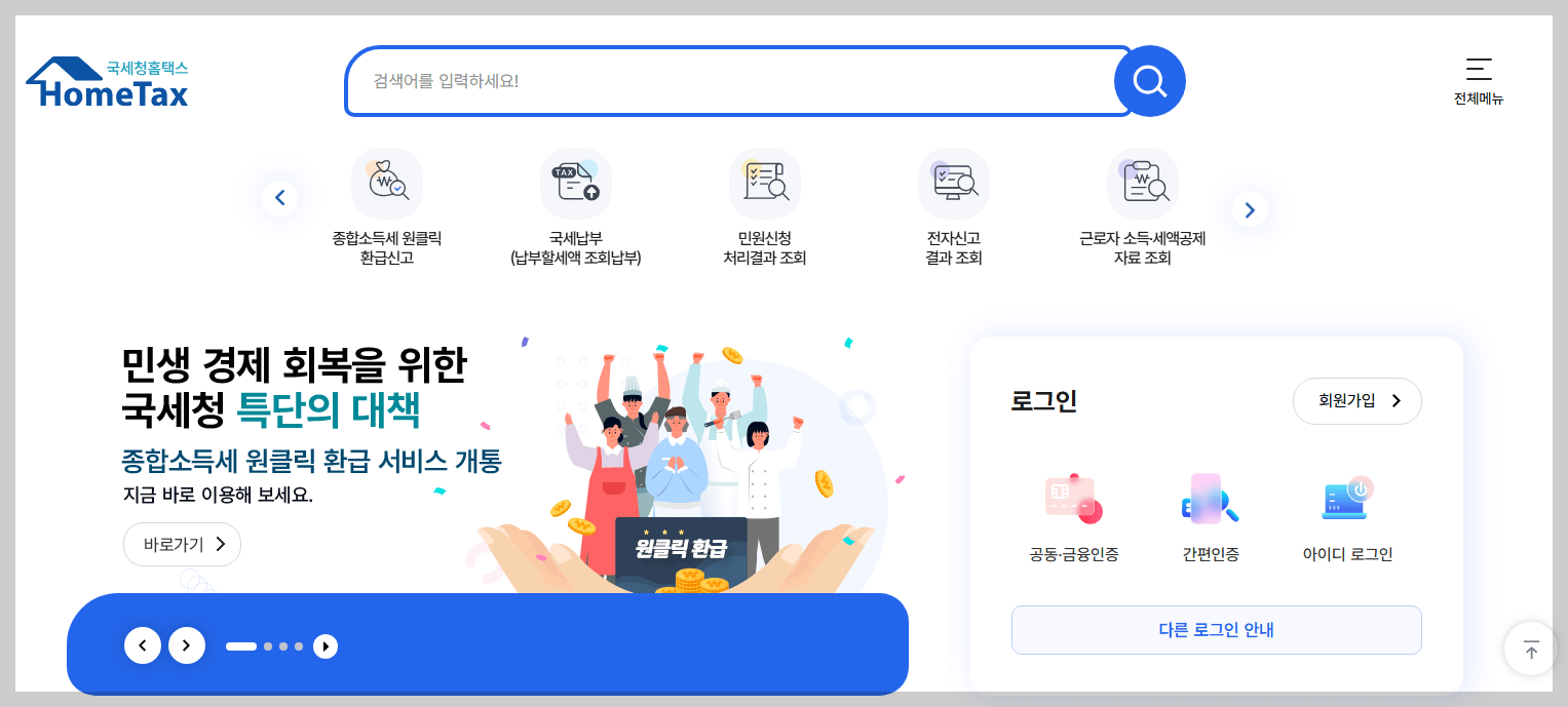 국세청 원클릭 종합소득세 환급 조회 서비스, 숨어 있는 내 돈 찾자~